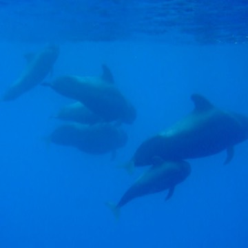 Short finned pilot whales (globicephala macrorhynchus). On the right, notice the mother and its calf.