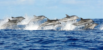Bow riding for a pod of striped dolphins (stenella coeruleoalba)