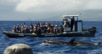 Oceanus, skipped by Michael, and two false killer whales (pseudorca crassidens).